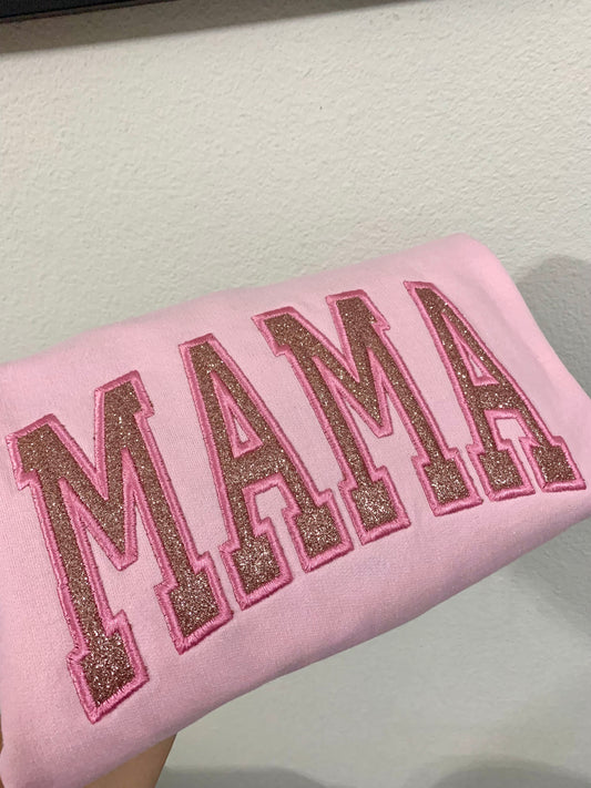 PINK- MAMA Glitter HTV Embroidered Apparel